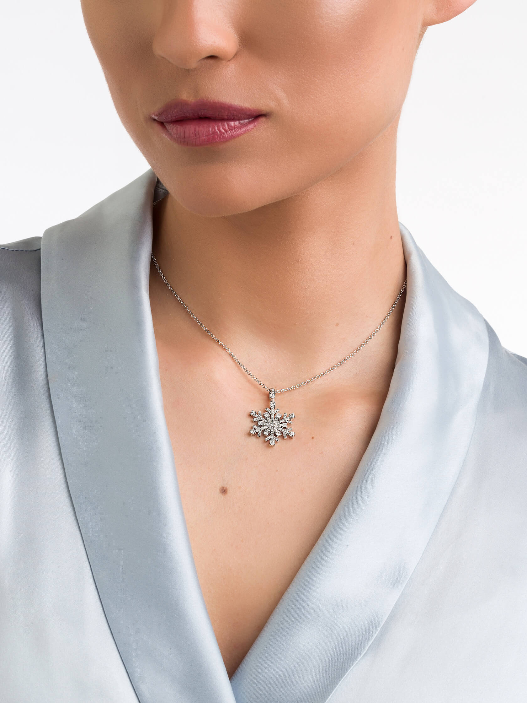 The Frost Necklace is inspired by the quiet moment when dawn first touches the earth, the instant light begins to shape the world. Its form reflects the natural geometry at the heart of the Frost collection: a harmony of precision, clarity, and softly unfolding brilliance. Born from connection and love, the Frost Necklace carries a story close to its creator’s heart. The design began as a gift, a snowflake pendant imagined for the designer’s daughter. What started as her simple wish became the spark that shaped the entire Frost collection. Crafted in recycled 18-karat gold and set with 0.77ct of round brilliant laboratory-grown diamonds, the pendant captures shimmering patterns that appear when light meets stillness. Pair it with Sifiso x Frost Gift Set