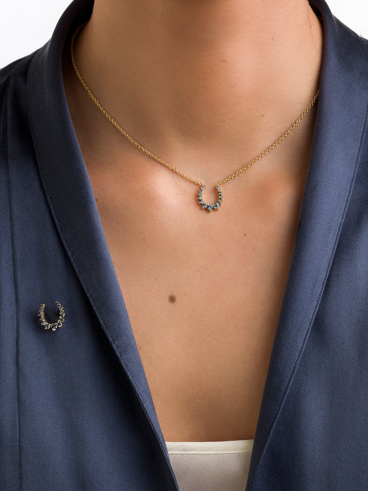 Journey Graduating 18ct-Karat Gold & Black Diamond Horseshoe Necklace